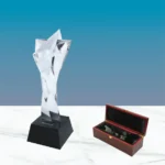 The globe trophy is incredibly beautiful and elegant due to its golden tint. Packed in Luxury Wooden Box.